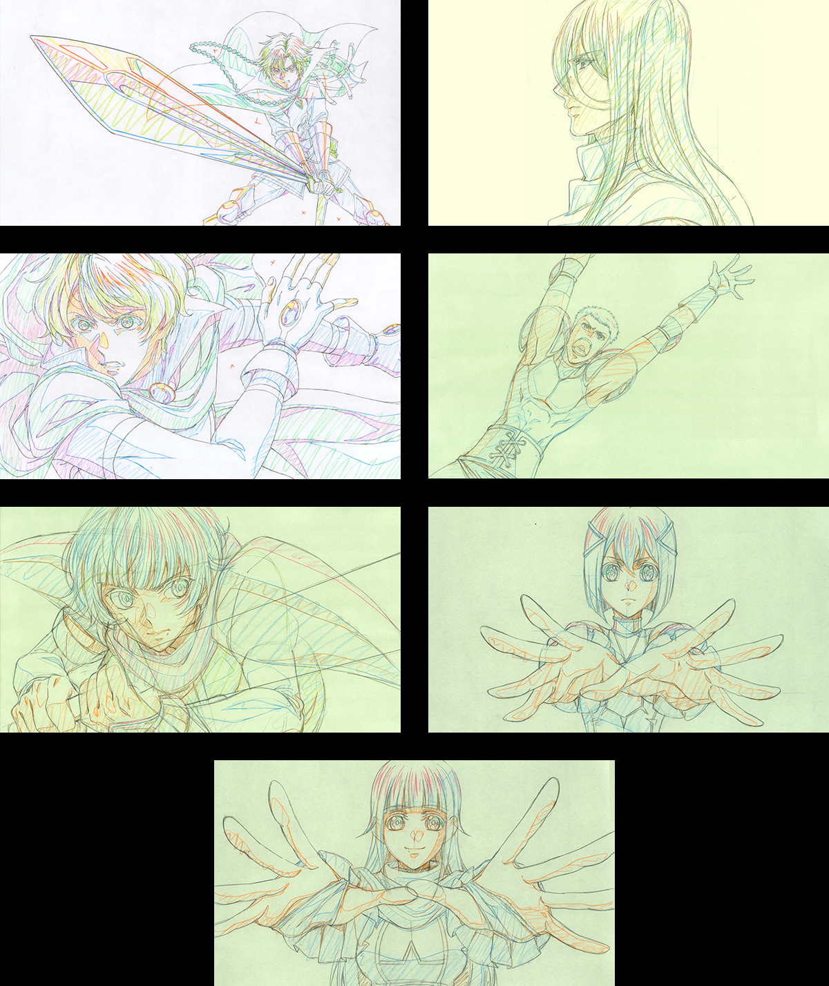 キービジュアルで描ききれなかった勇者達クラスメイトの作画を大切にしました。アクションが得意な江禹辰さんが作画を担当してくれ、特に女性2人(上野・細山)の回り込むカットは立体感がありカッコよくなっています。それを受けてキャラクターデザインの斉藤香さんが繊細で華やかになるよう調整して完成映像になっています。